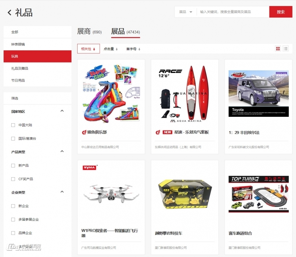 中外玩具網(wǎng)看到,其中玩具展區(qū)位于禮品類目之下,展商690家,已上傳展品47437件。采購商可以與參展商即時(shí)溝通和預(yù)約洽談。