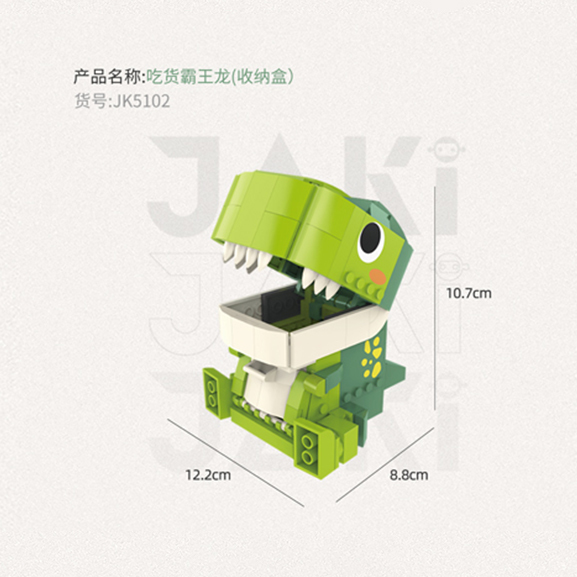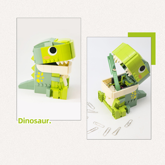 掀起恐龍嘴巴,投放物件, 拉開恐龍肚子,取出物件。